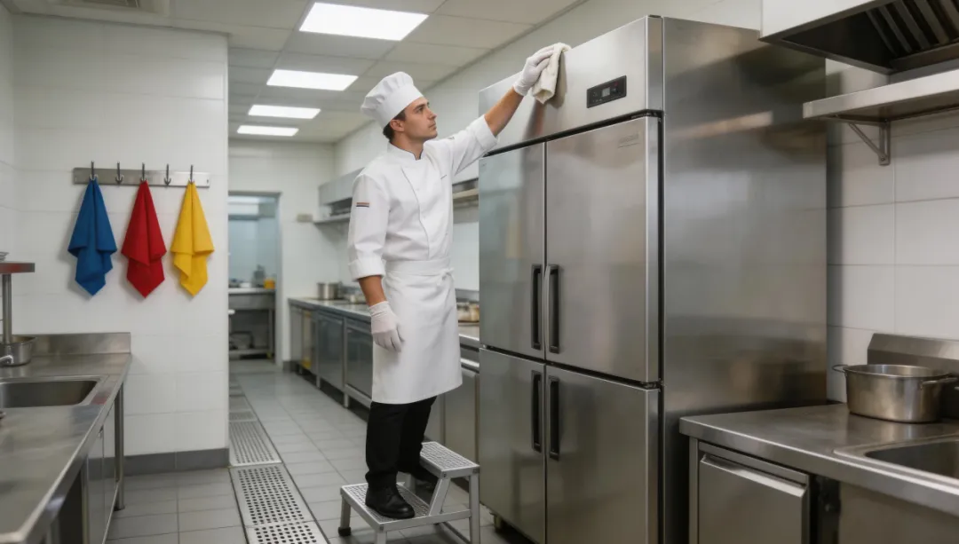 后厨的卫生死角: 冰箱顶部的灰尘、下水道的异味、抹布的分类,这些地方决定了你的品牌上限。