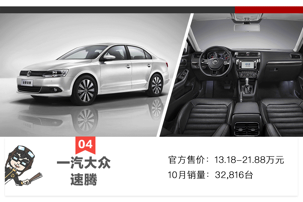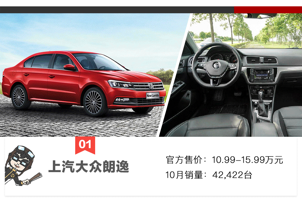 砖叔点评:作为紧凑级轿车的霸主,朗逸已经牢牢占据了榜首位置很长时间。作为德系品牌家用车,朗逸价格不高、各项指标都很平衡,在家用属性上基本没有什么短板,自然倍受欢迎。