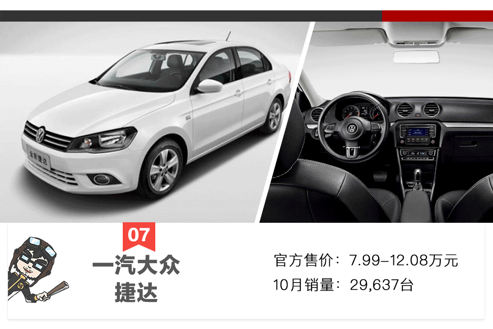 砖叔点评:捷达、宝来、速腾,大众牢牢占据着紧凑级轿车领域,由低到高不同细分定位的霸主位置。捷达车型作为在中国最响亮的车名之一,不管是什么车,有这个名字就足够保证销量了。