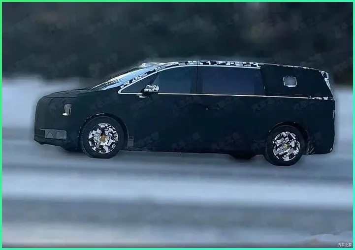 谍照里能看到的配置清单确实唬人:车长5.5米、轴距3.6米、对开门、激光雷达、三电机可选、增程版续航400公里……每一项单拎出来都很高级。