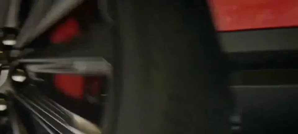 轮毂部分,红色V系列展示的是:“黑色轮毂和红色刹车卡钳,强调车辆的运动特性。”