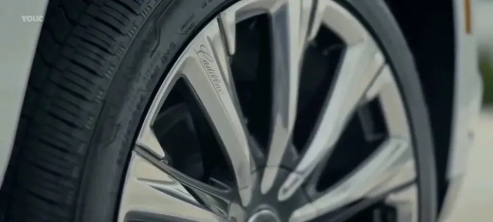 而白色版本则是:“多辐镀铬轮毂和凯迪拉克标志,彰显豪华品牌身份。”