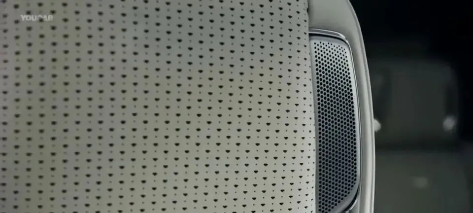 音响细节也有特写——“车内座椅头枕扬声器特写,提升音响体验。”