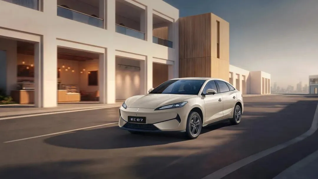 该车可以看作是比亚迪 e7 换标而来,设计延续比亚迪海洋网家族风格。尺寸长宽高分别为 4780×1900×1515mm,轴距 2820mm。动力方面搭载前置单电机,分 100kW、130kW 版本,CLTC 续航有 450km、550km 等版本可选。(来源:IT之家)