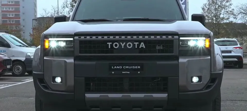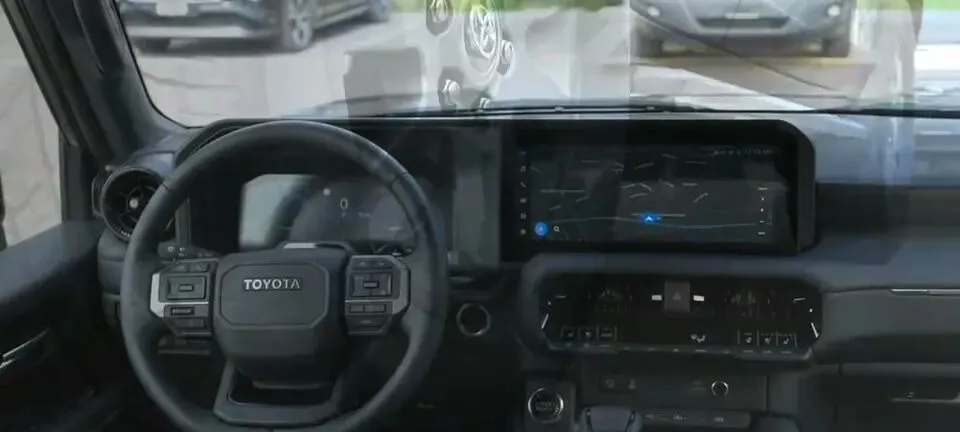 素材明确写到:“车辆前脸展示,方正复古的设计,配备TOYOTA字母标识格栅,LED大灯点亮效果。”