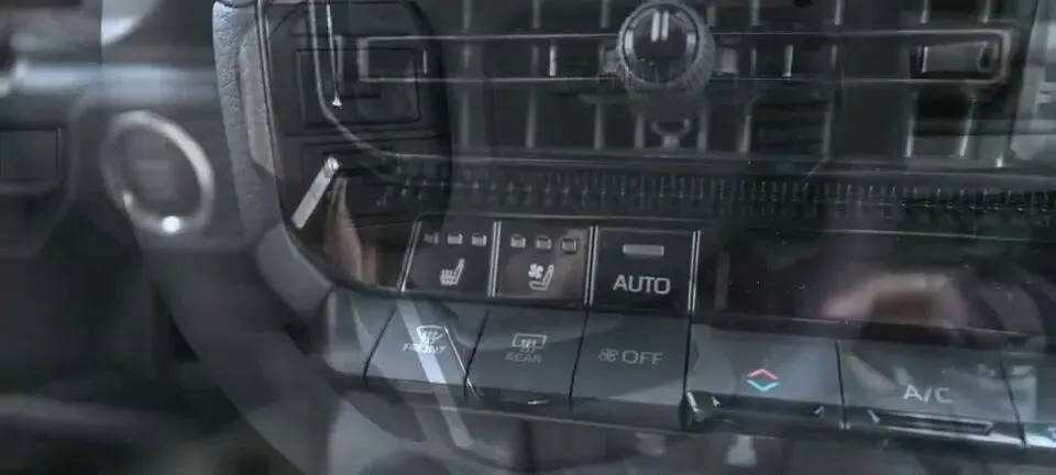 素材明确列出:“中控区域按键展示,包括座椅加热、自动空调、风挡加热等。”