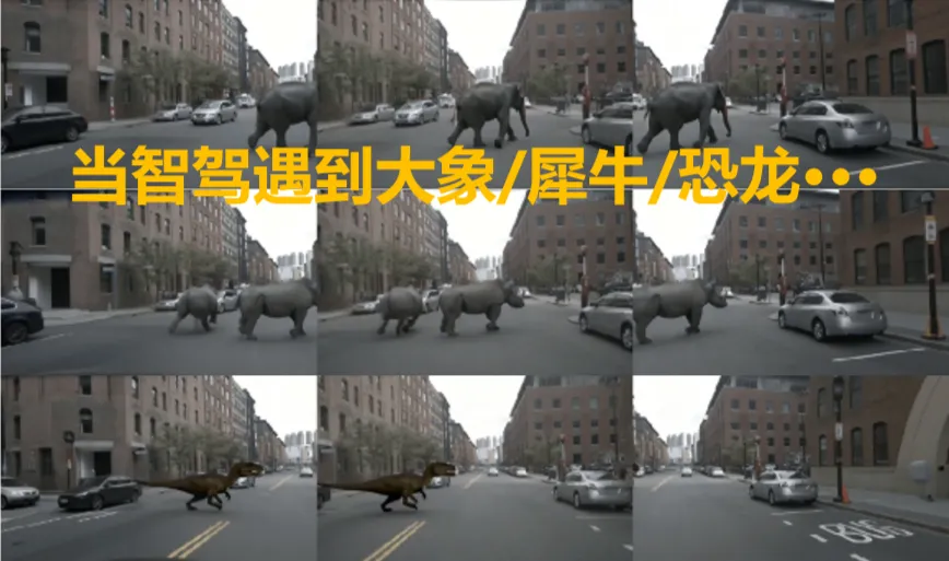 长尾场景覆盖是自动驾驶安全验证的核心挑战。真实道路上几乎不可能采集到"大象横穿马路"或"恐龙出现在路口",但自动驾驶系统必须具备应对能力。仅靠路测来覆盖这些场景,效率极低且不可控。