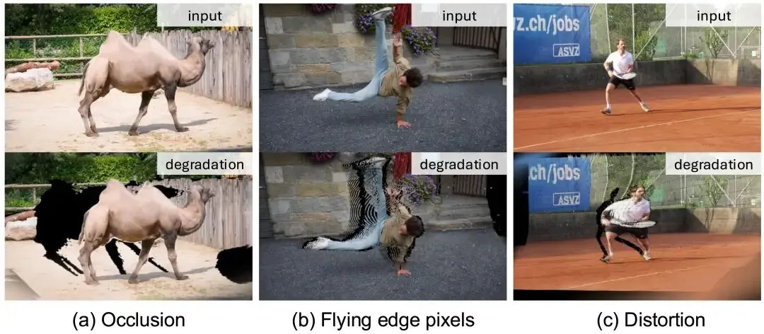 在线单目退化模拟:要从百万级单目视频中学习,核心难题在于单目视频只有一个视角,如何构造"输入-目标"训练对?NeoVerse 通过三种机制解决: