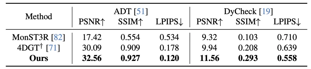 ✅ 重建质量:静态和动态场景重建 benchmark 均达 SOTA