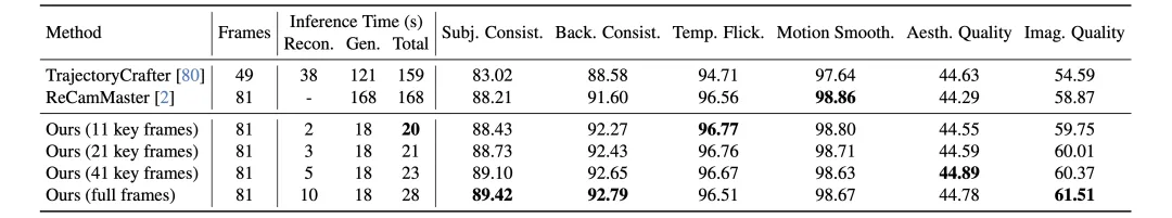 NeoVerse 在重建和生成两个维度均取得了 SOTA 表现:
