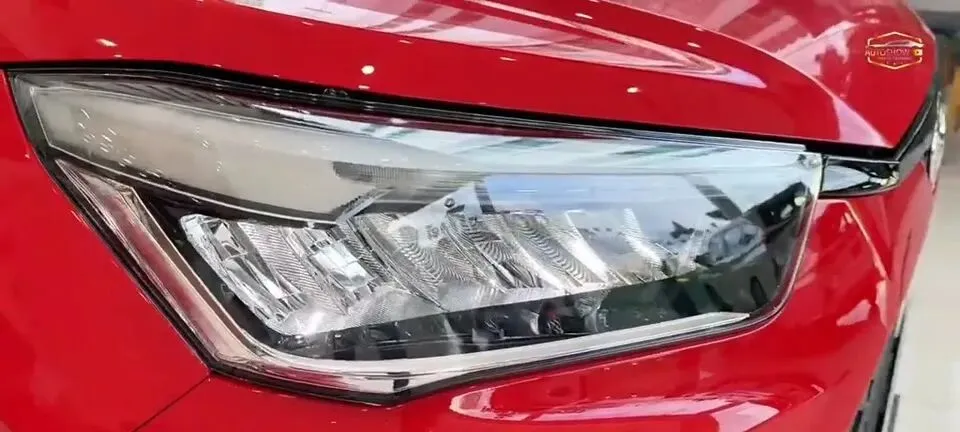 画面里给到的是“红色车身,前脸设计,黑色网状进气格栅,分体式大灯,整体造型时尚动感”。