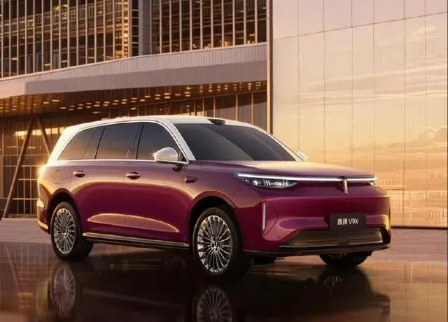 接着咱们看看第二道“大菜”,魏牌的VX9。这车定位是大型SUV,光听这名头就知道不一般,而且它还是归元S平台下的首款车型,来头不小。它的设计风格跟坦克700完全是两个路子,走的是简约时尚风。前脸是封闭式的,配了条贯穿式的环形灯带,连车标都能发光,晚上点亮了估计特别有科技感,看着就干净利落,没有太多花里胡哨的装饰。
