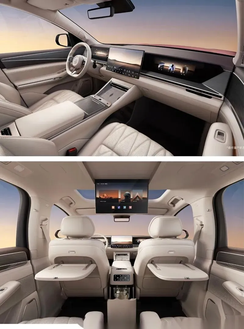 魏牌V9X被视为“AI豪华大六座旗舰”,从字面意义上看其智能化以及豪华属性会很强,并且老板魏建军亲自担任代言人,足见其重视程度,作为魏牌全新的旗舰车型,V9X是基于长城原生AI全动力平台归元S平台首款车型,抛开外观不讲,单说配置和动力,魏牌V9X采用2+2+2的6座布局,第二排支持躺椅模式,并配有翻折娱乐屏,前排/二排均配有手机无线充电面板。它搭载2.0T插电式混合动力系统,纯电续航里程分别为240km和363km,配备混动6C电池,充电5分钟续航200Km。