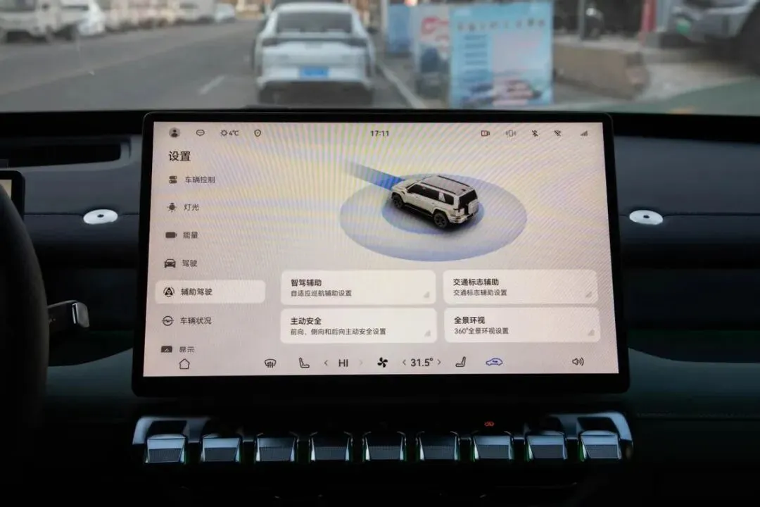 底盘也采用前后双叉臂式独立悬挂,中高配还配备了空气悬挂,中高配车型还配备了整体主动转向系统,它能接受车辆各种动态行驶信号,然后综合判断,输出一个相适的转向角度。越野能力方面,新车也具备坦克掉头和蠕行模式,搭配30°的接近角和30/31°的离去角,最小转弯半径6.2/5.2米,最大爬坡度100%,通用性和转弯能力,以及爬坡能力都相当优秀。