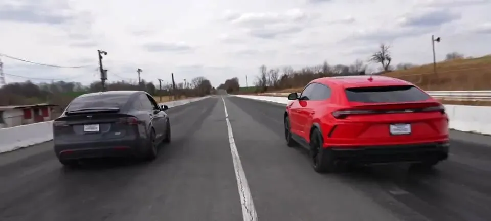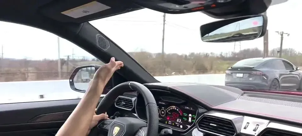 特斯拉视角展示与兰博基尼Urus的加速对决。