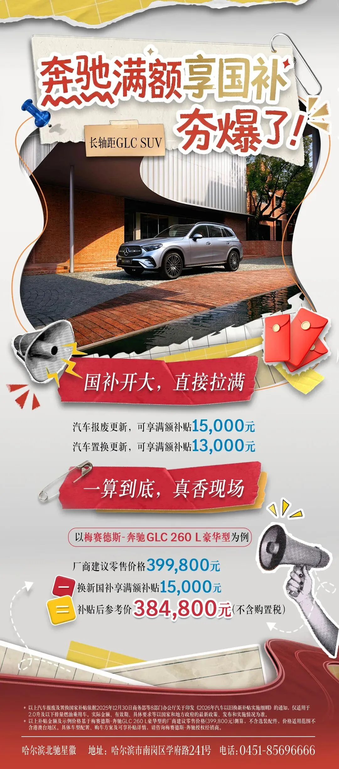 奔驰满额享国补,长轴距GLC SUV,国补开大,直接拉满
