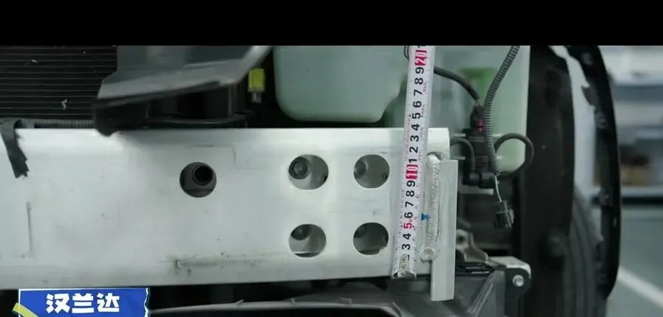 进一步说明还有:“前防撞梁的纵向高度也有139毫米,铝合金材质的厚度是3毫米。”
