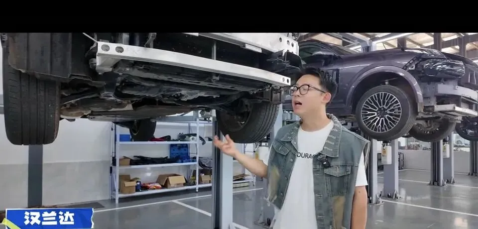 SUV,底盘用料、结构形式、防撞梁尺寸被逐一拆开摆在台面上。
