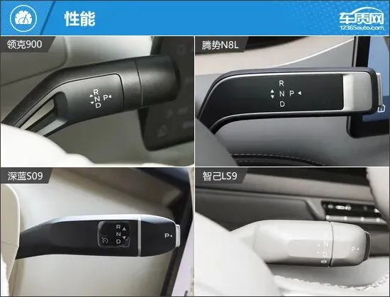 内饰方面,四款车型均采用简洁大气的设计风格,且格外注重科技氛围的营造,副驾驶娱乐屏幕也没有缺席。其中,领克900与深蓝S09的副驾驶娱乐屏与中控屏均采用双联屏设计,腾势N8L和智己LS9的副驾娱乐屏采用内嵌式布局,与内饰整体风格更显融合统一。换挡形式上,四款车型均采用电子式怀挡换挡,不仅更具精致感,也有助于前排空间的优化。
