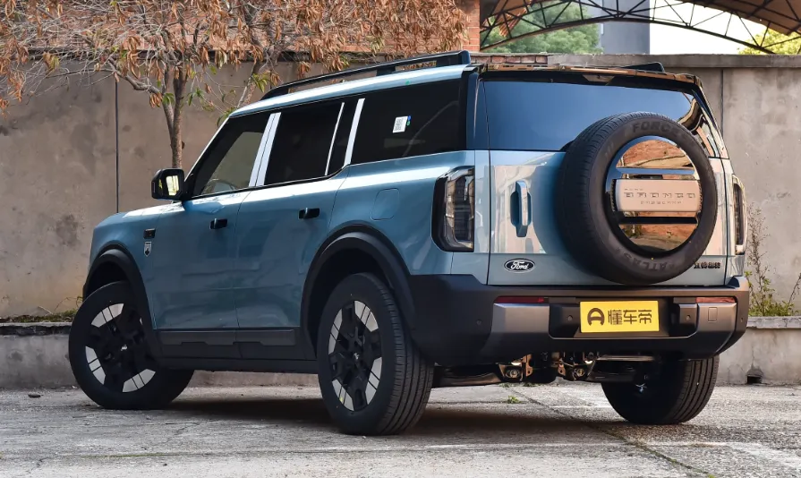 尾部这个设计就比较经典了, 外挂备胎加侧开尾门 ,这个就是越野车该有的样子。竖向尾灯跟前脸能呼应上,然后备胎罩上那个“BRONCO”标识老远就能认出来。