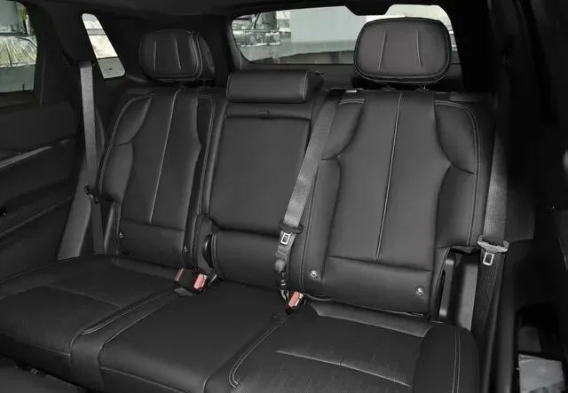 坐进车里看看,凯威德走的是六座路线,2+2+2的布局。现在市面上很多中大型SUV都爱塞七个座,但说实话,第三排基本就是应急用的,成年人坐进去腿都伸不开。凯威德搞六座,第二排直接给了两个独立座椅,中间留过道,上下车方便不说,还能给老板或者家人整个更私密的空间。座椅看着就厚实,填充物软乎,缝线也整齐,摸上去应该是真皮加翻毛皮的材质,这手感确实对得起豪华两个字。