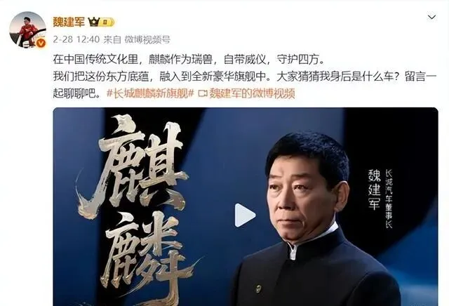 最近刷短视频的时候,无意间刷到长城汽车董事长魏建军的一段预热视频,说实话,挺有意思的。平时咱们看到的车企老板,大多是在发布会台上讲PPT,这次老魏直接跑到镜头前,拿着手机拍视频,一边聊车一边聊文化,感觉挺接地气的。他这次聊的不是别的,正是长城即将推出的全新豪华旗舰SUV,也就是之前大家都在猜的那个魏牌V9X。