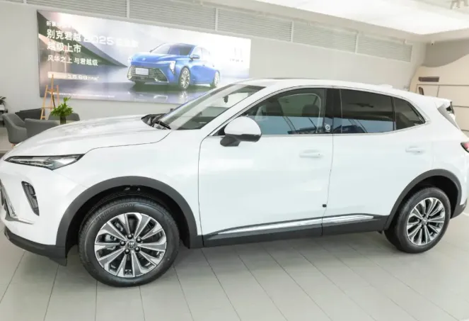 真的,别克的PURE Design这套语言,在昂科威S上挺出彩。没有为了所谓“新能源感”搞得张牙舞爪,就是很扎实、很紧绷的一股运动劲儿。那个标志性的中网,配上分体式大灯,特别是侧面,你们一定要去看实车侧面。那种短前后悬,带点溜背的线条,配上黑色轮眉, 一看就不是那种“老实巴交”的家用车,有种蓄势待发的感觉。车尾也挺饱满,双出排气(虽然是装饰)也没缺席。外观这东西,见仁见智,但我觉得,在如今一堆眯眯眼贯穿灯里,昂科威S这个长相,算是有记忆点的。