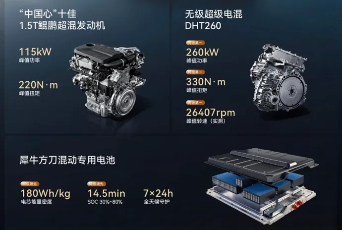 奇瑞风云T9L确定于3月中下旬正式上市,定位大五座插电混动SUV,主打家用长续航与舒适出行,预计售价15-19万元区间。外观与空间上,新车尺寸为4870×1930×1710mm,轴距2920mm,后排腿部空间1037mm,纯平地板带来超大座舱体验。内饰采用文房雅居座舱理念,搭载大尺寸联屏、零重力座椅、23扬声器高保真音响及车载冰箱等,融合科技感与家用舒适性。动力方面,新车搭载奇瑞鲲鹏超能电混C-DM系统,1.5T混动专用发动机热效率高达45.79%,CLTC纯电续航230km,综合续航突破1400km,馈电油耗低至3.9L/100km,兼顾强动力与低能耗。四驱版本零百加速进入5秒级,最高车速可达240km/h,性能表现出众。智能与安全方面,风云T9L配备猎鹰700+智驾,地平线征程6P芯片560TOPS算力+27传感器(含激光雷达),支持城市NOA领航辅助。车身采用高比例高强度钢与2000MPa热成型钢,安全防护全面到位。同时,首任车主可享整车终身质保,三电系统享受8年/15万公里质保,用车更安心。综合来看,奇瑞风云T9L凭借超长续航、高效率、大空间与高配置,有望成为15万级插混SUV市场的高性价比之选。