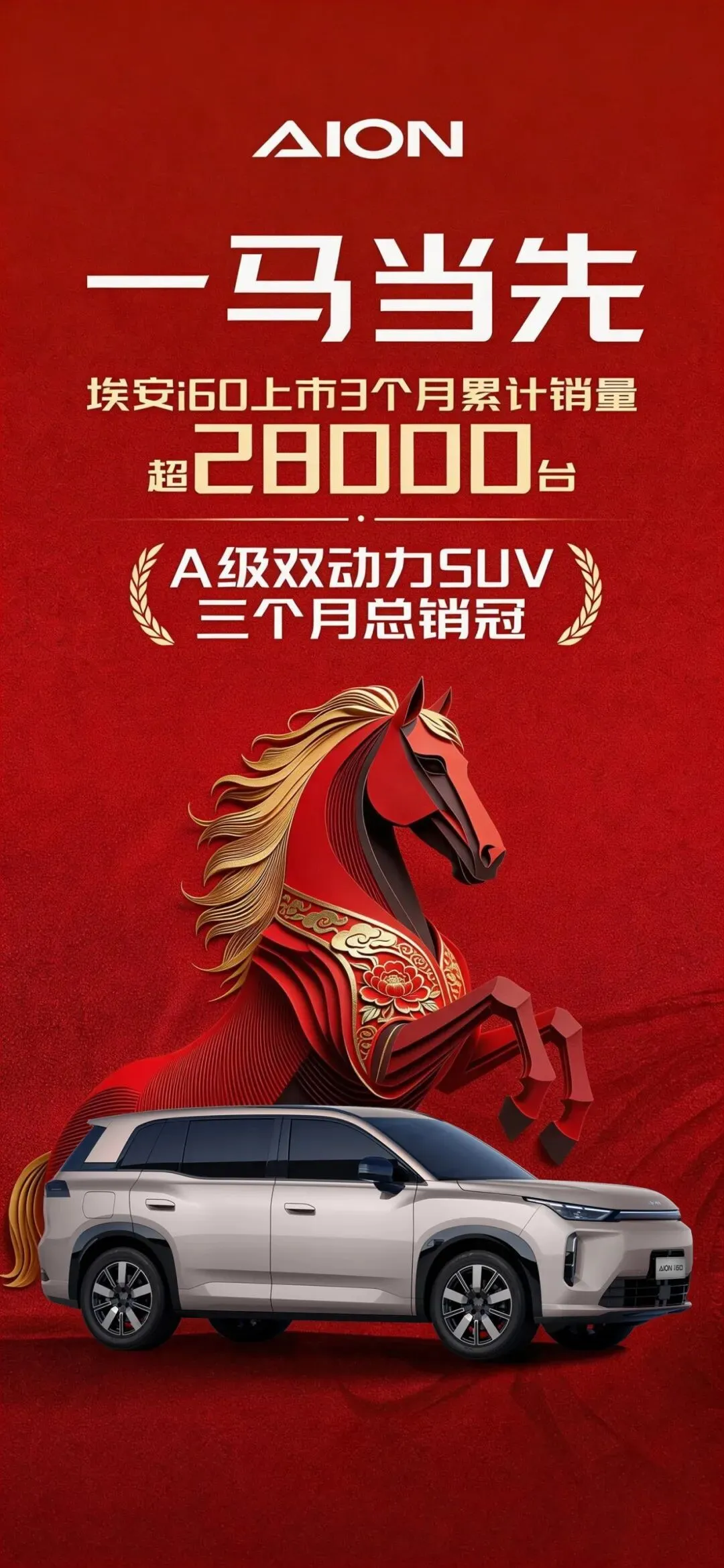 >【汕头金子】埃安i60斩获A级双动力SUV三个月总销冠