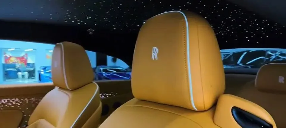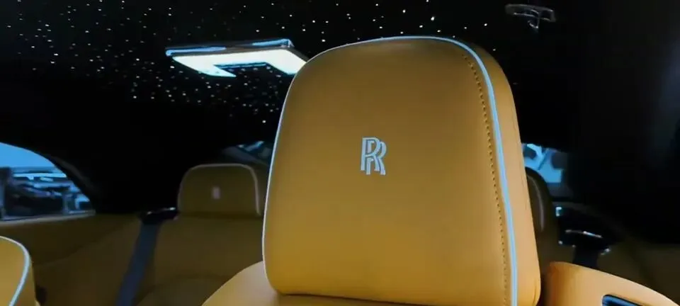 “展示劳斯莱斯幽灵的车内星空顶。”