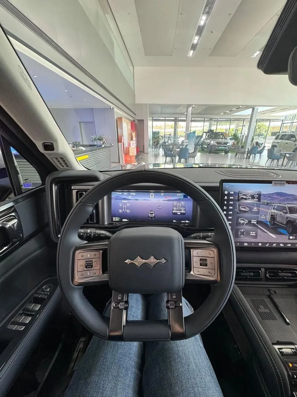 进到车.里,我.第一反.应是:诶?不糙。真的.不.糙。以.前.很多带大梁的车,内饰像毛.坯房,能用就.行。豹5这个内.饰至.少是“精.装房”。中控三块屏,实体.按.键也保留了一部分,这点.我.给好评。