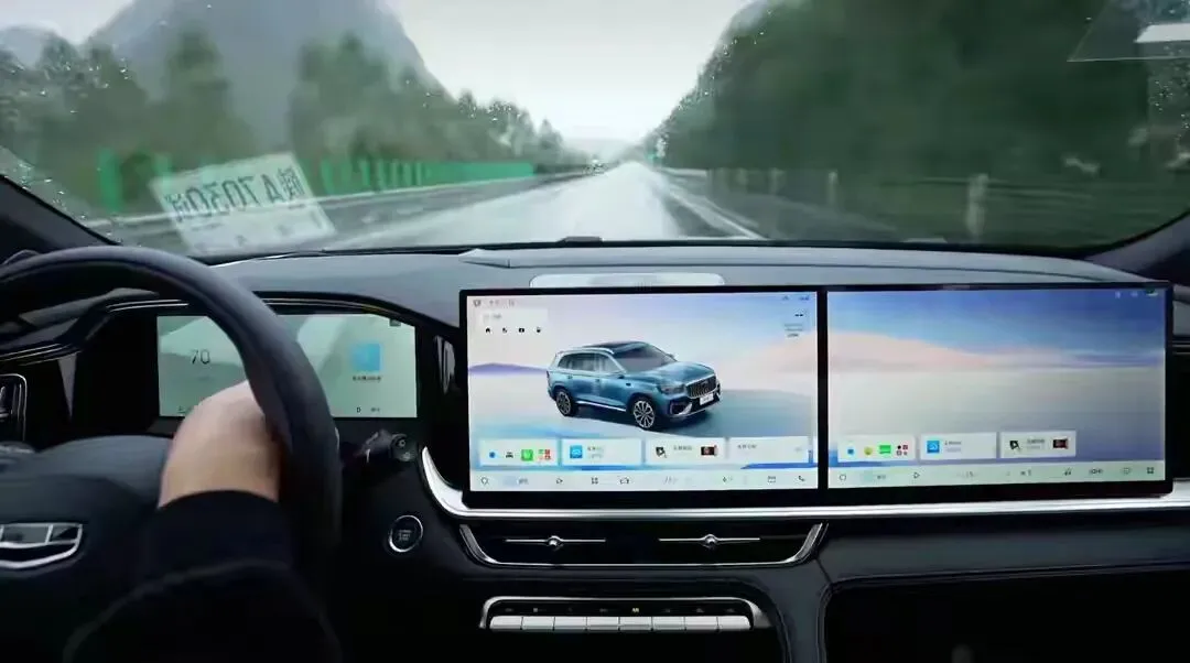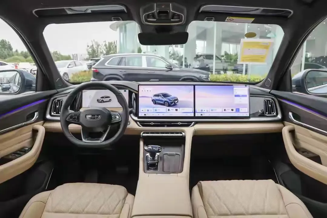 星越L长风版内饰最亮眼的地方就是三联屏+高通8155芯片全系标配,没有低配版本。仪表屏:12.3英寸全液晶式