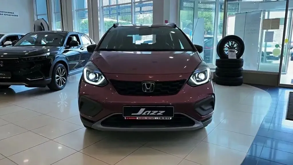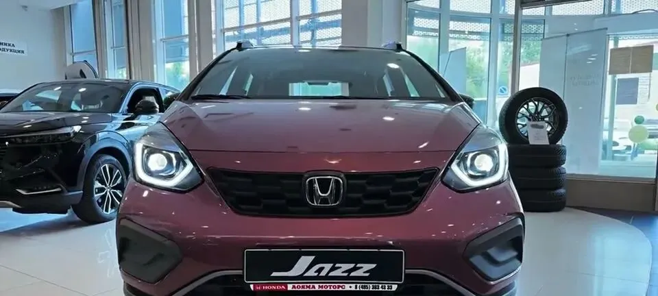 “展示车辆前脸设计,包括前大灯、进气格栅和Jazz标志。”