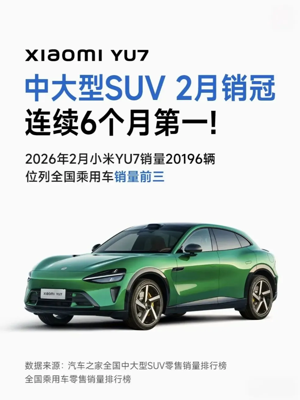 刚刷到小米YU7这款车的2月份销量,我直接看愣了。春节车市淡季,它卖了20196辆。