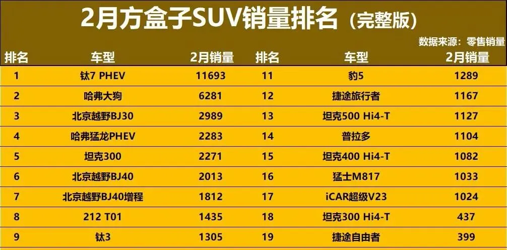 最近翻了翻2026年头两个月的车销量榜,真有点意外。以前一提方盒子SUV,脑子里全是大狗、坦克300这些燃油车,现在再看——前20名里,12个是插混,4个油车,剩下4个是纯电或增程。不是数据错了,是真变了。大家不再光为样子买单,开始算油耗、看续航、掂量底盘能不能过个烂路。