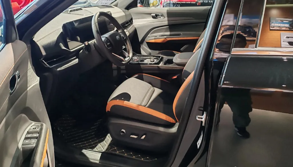 虽然说价格便宜,但是该有的设计还是挺丰富的。首先是外观真的非常漂亮,26款福特领睿采用的是贯穿样式的黑曜石前格栅设计,非常富有张力,搭配上黑色的车顶,熏黑的反光镜,颜值部分确实很漂亮。而且厂家刻意进行了越野方面的升级,打造了19度的接近角,以及25度的离去角,匹配上18英寸的轮毂,还是有一定越野能力的。