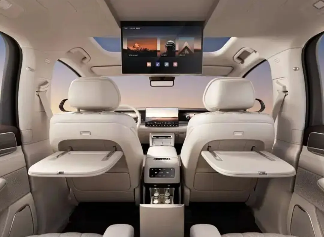 当然,你要是不差钱的话,可以直接上顶配四驱巅峰版,全款落地50万内。除了以上配置之外,增加了豪华氛围灯、后排电动调节、后排座椅通风加热按摩、后排独立控制、车载冰箱、前后排隐私玻璃、后排多媒体控制系统,就这说它是D级行政豪华,这不过分吧?
