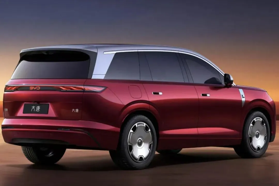 车身侧面的争议的焦点,也是它的亮点——双色车身搭配21英寸大饼式轮毂,难免让人联想到迈巴赫的经典设计。有人说这是借鉴,也有人直言,这是中式豪华与国际审美接轨的大胆尝试。毕竟,大饼轮毂本就是豪华车的经典符号,比亚迪用复古元素为大唐加持气场,无可厚非。
