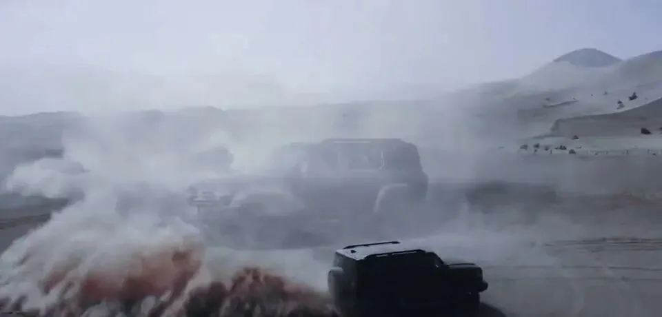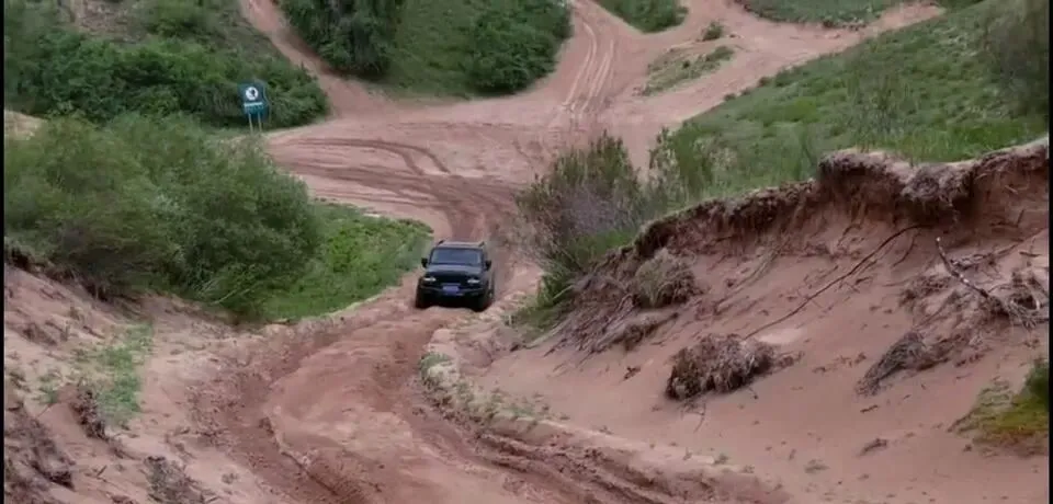从“雪地掉头”,到“河流行驶”,再到“泥泞道路”“沙漠漂移”,素材给出的全部是路况画面。