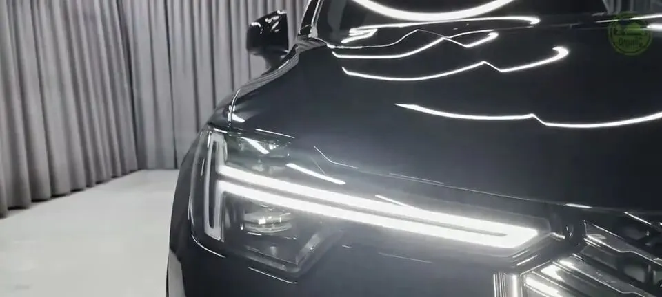 素材中明确写到:“汽车车头展示,展示汽车前脸设计和车灯。”