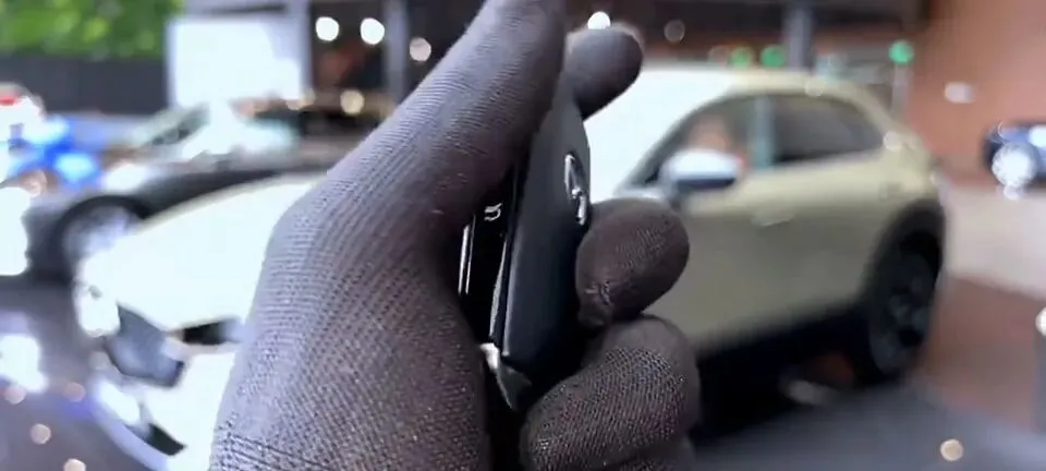 画面明确出现了车钥匙,并且对按键进行了展示,但没有进一步说明功能细节。