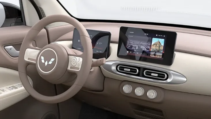 而2月底发布的第五代车型,更是把“精致感”拉满——告别初代方正硬朗的造型,换上圆润的圆形大灯、封闭式格栅和贯穿式镀铬饰条,整体视觉更灵动亲切。车身配色提供“灰萌萌、绿悠悠、白绒绒”三种清新风格,一看就是冲着年轻人来的-5-9。