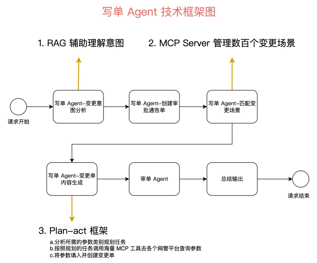 - 写单主要采用 Agentic Workflow + Plan-Act 架构——先规划任务路径,再按需调用工具获取参数;