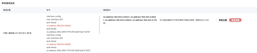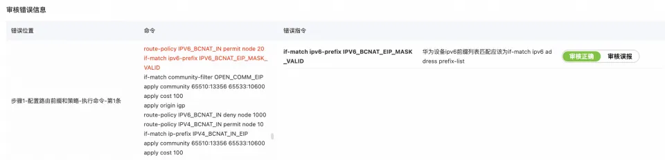 TP(真正例):模型预测 CLI 有问题,实际也有问题。例如模型准确识别出「undo ip pv6-prefix」这条命令存在语法错误——这是模型做对了,需要强化。
