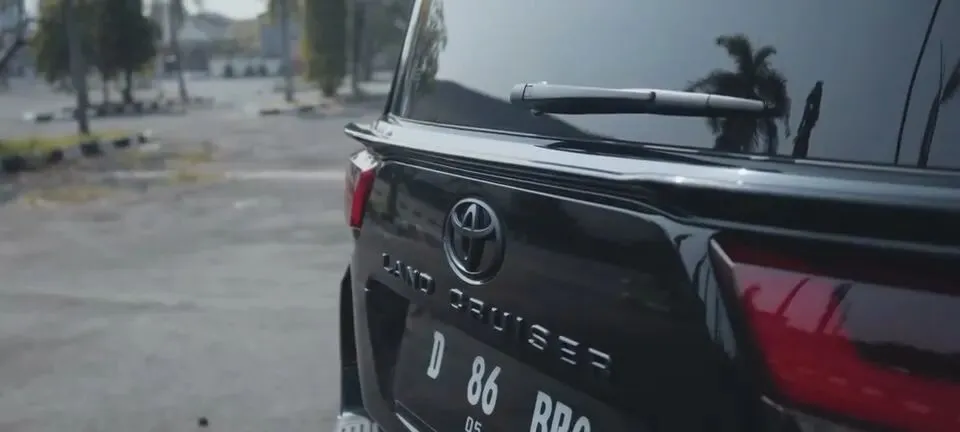 同时画面对应的是“丰田陆地巡洋舰的尾部细节”。表达很直接——就是看尾灯、看品牌标识、看车牌位置与整体布局。