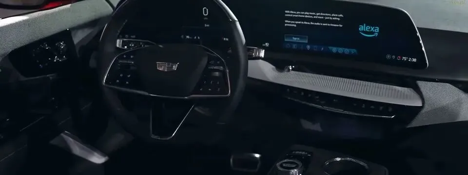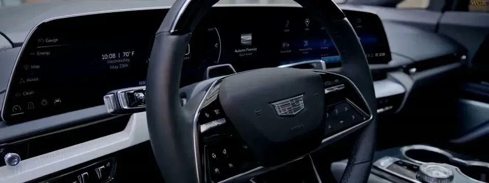 素材原话包括:“凯迪拉克OptiQ方向盘和中控大屏。”