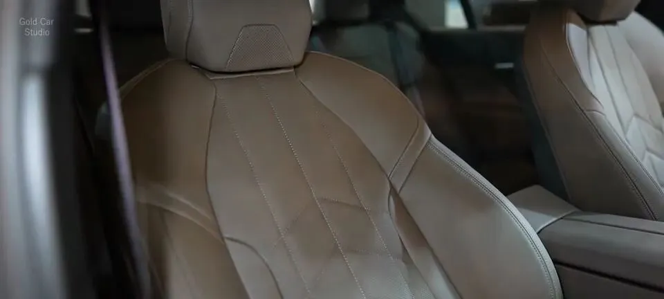 这里的镜头集中在座椅材质与触感描述。