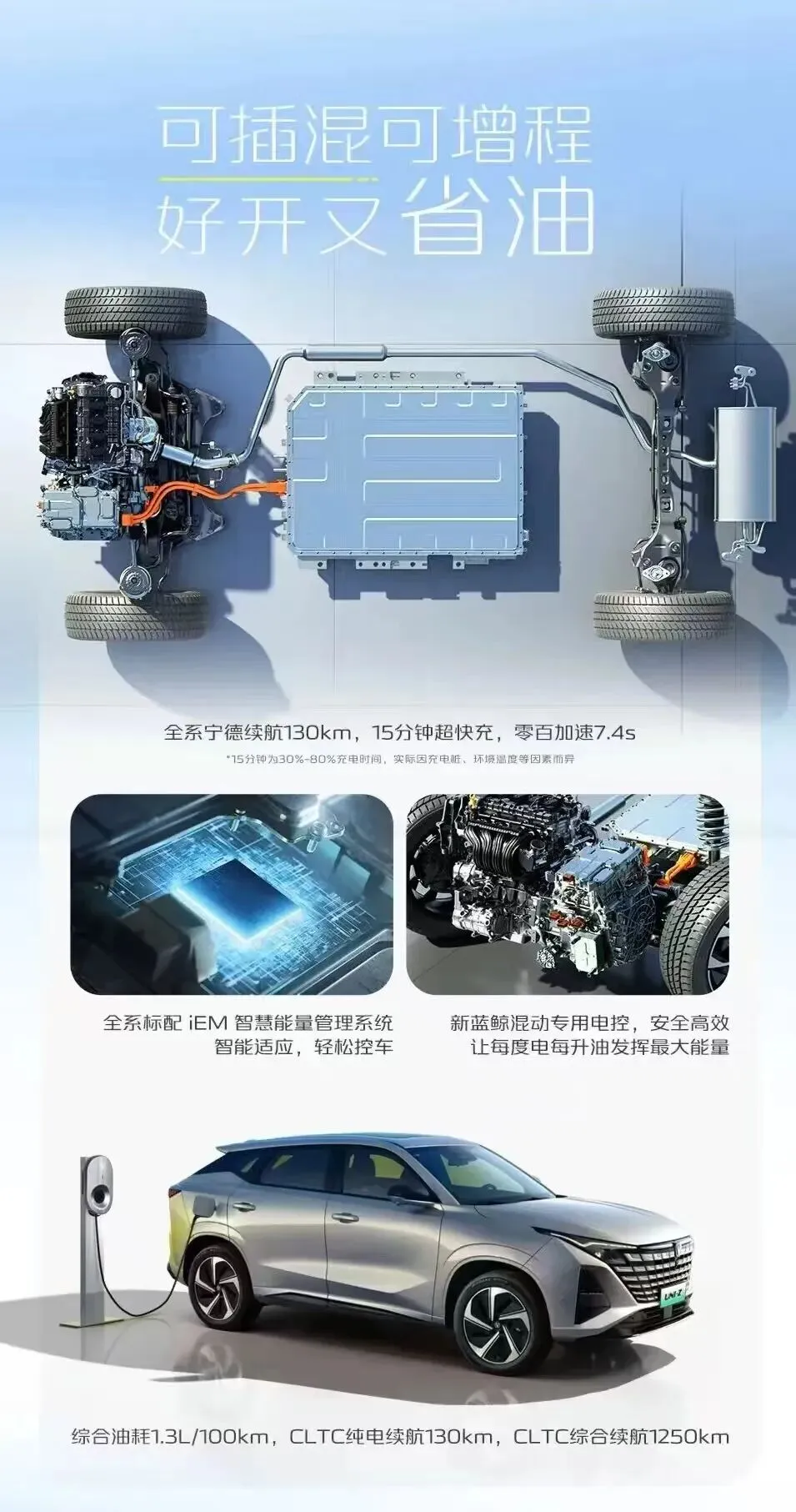 入门版不到10万元的落地门槛,直接击穿了消费者对插电混动SUV的价格心理防线。这不仅仅是价格的下降,更是价值的重塑。在同价位竞品还在为“是否配备快充”或“是否有大屏”纠结时,UNI-Z PHEV已经给出了“满配”的答案。对于预算敏感的家庭用户而言,这不仅降低了购车门槛,更消除了“买低配后悔,买高配超支”的纠结。续航“终结者”:纯电130km+综合1250km
