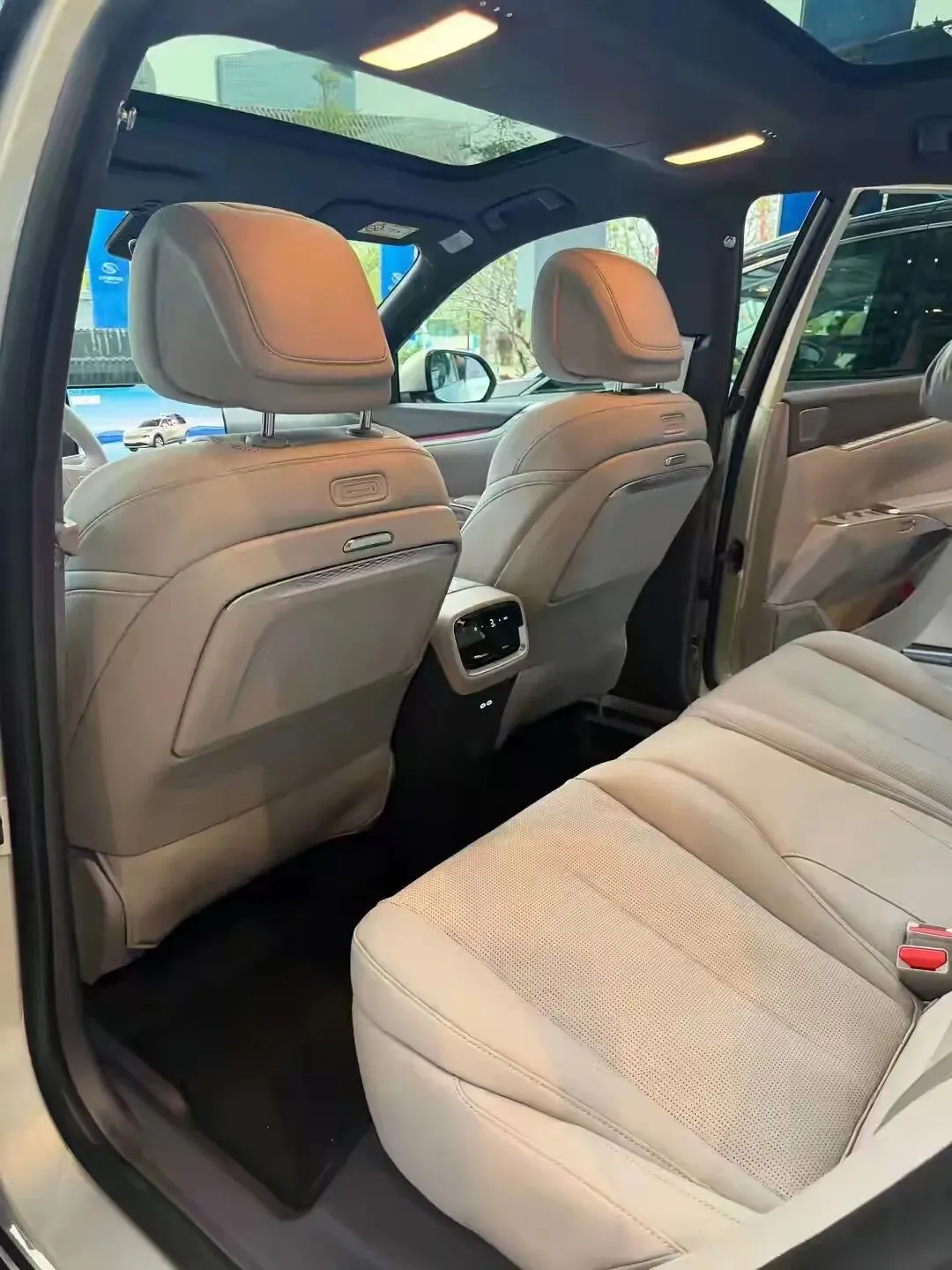 得益于中型SUV的尺寸,别克至境E7的车内空间宽敞,座椅填充厚实,坐垫和侧翼都比较长,配备副驾零重力座椅,支持电动腿托、加热、通风以及按摩等功能,并且车内座椅可实现双人大床、副驾单人床、老板模式等多种座椅组合布局,新车还提供车载冷暖冰箱、15.6英寸吸顶娱乐屏、双折叠小桌板等配置。