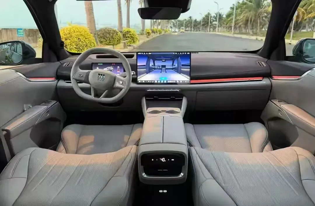 别克至境E7的车机将会使用高通8775座舱芯片,支持豆包AI语音助手等,在中控大屏下方保留了一排空调操作的实体按键,而副仪表台是上下双层结构,下面一层为储物空间,上面一层有手机无线充电面板、双杯托、对开式扶手箱等。